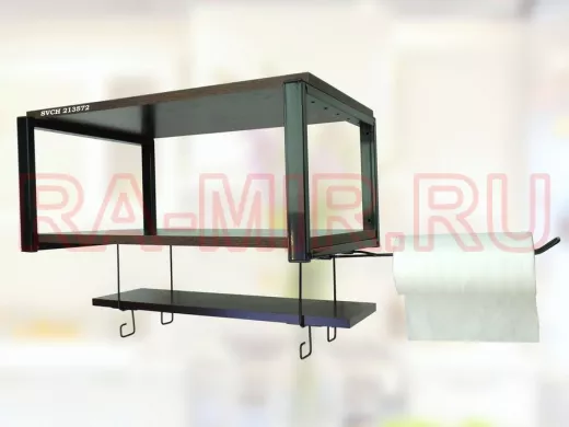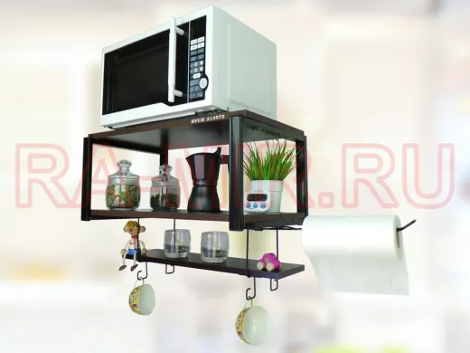 Полка для микроволновки с подвесной полкой, 27см, черный "SVCH 213572" 60х30см, венге, держатель