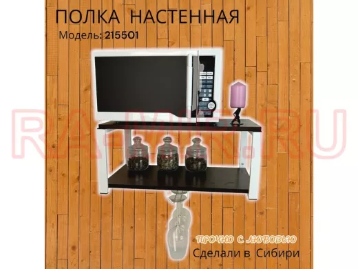 Заказать звонокПолка c одним бокалодержателем для микроволновки "SVCH 215501" 60х30см, белая, венге