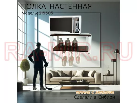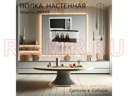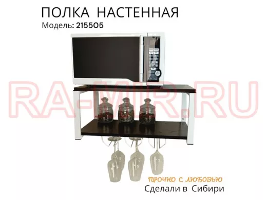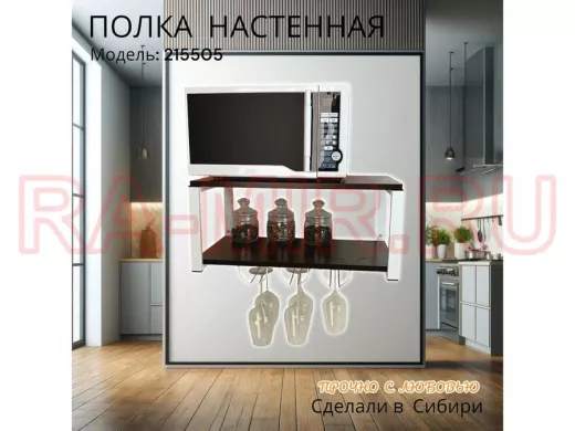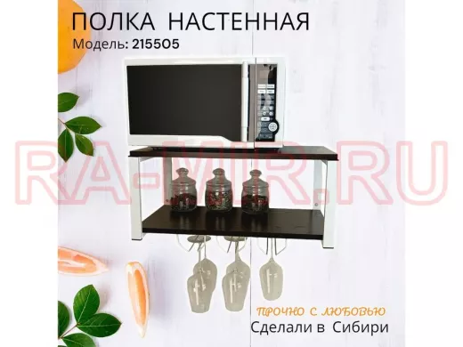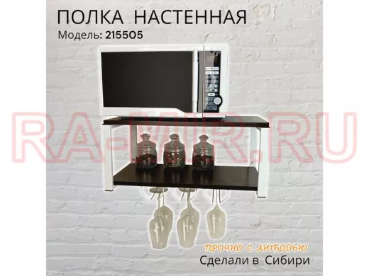 Заказать звонокПолка c тремя бокалодержателями для микроволновки "SVCH 215505" 60х30см, белая, венге