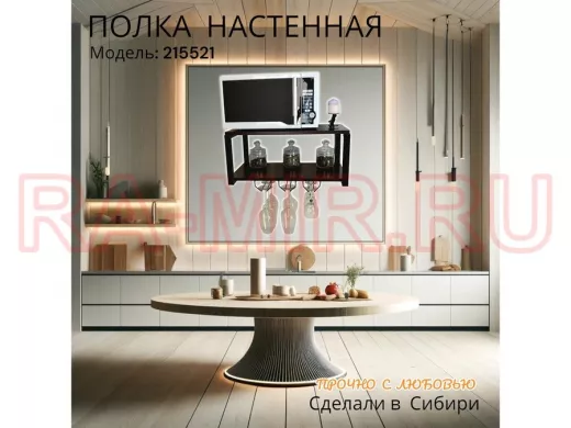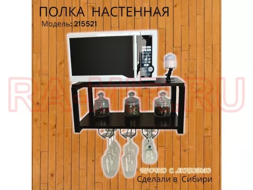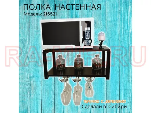 Заказать звонокПолка c тремя бокалодержателями для микроволновки "SVCH 215521" 60х30см, черная, венге