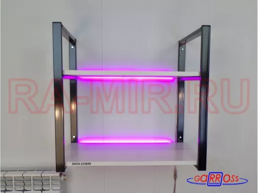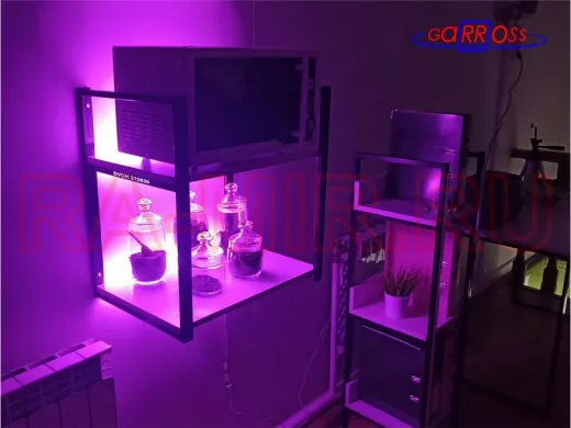 Подсветка розового цвета сдвоенная для двух полок, её можно устанавливать в любое место на полке