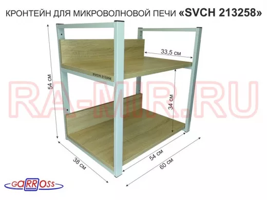 Кронштейн для микроволновки, высота, 54см серый "SVCH 213258" две полки 35х60см со стенками, дуб