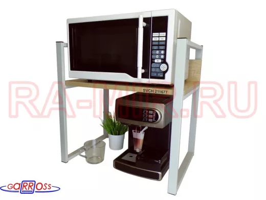 Универсальная подставка для бытовой техники (микроволновой печи, кофемашины, тостера, электрического чайника и др) позволяет эффективно использовать место на столе.
