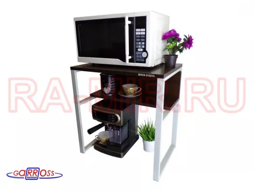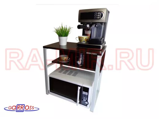 - Универсальная подставка для бытовой техники (микровоновой печи, кофемашины, тостера, электрического чайника и др) позволяет эффективно использовать место на столе.