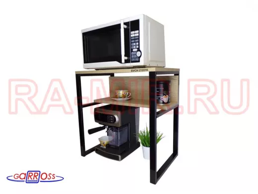 - Универсальная подставка для бытовой техники (микровоновой печи, кофемашины, тостера, электрического чайника и др) позволяет эффективно использовать место на столе.