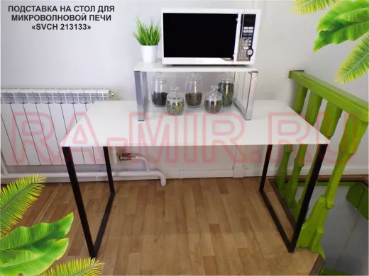 - Универсальная подставка для микровоновой печи позволяет эффективно использовать место на столе.