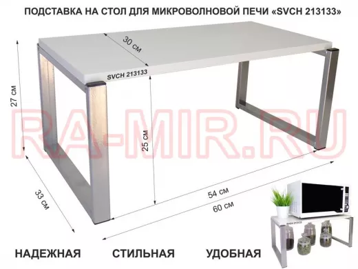 Заказать звонокПодставка на стол для микроволновой печи, высота 27см, серебр "SVCH 213133" полка 60х30см, сосна