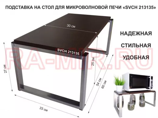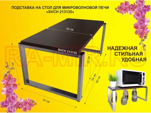Заказать звонокПодставка на стол для микроволновой печи, высота 27см, серебр "SVCH 213135" полка 60х30см, венге