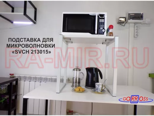 - Универсальная подставка для бытовой техники (микровоновой печи, кофемашины, тостера, электрического чайника и др) позволяет эффективно использовать место на столе.
