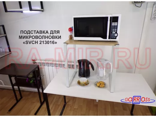 - Универсальная подставка для бытовой техники (микровоновой печи, кофемашины, тостера, электрического чайника и др) позволяет эффективно использовать место на столе.