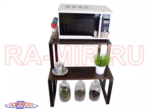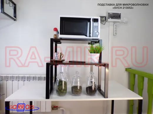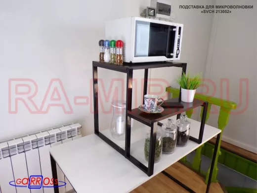- Универсальная подставка для бытовой техники (микровоновой печи, кофемашины, тостера, электрического чайника и др) позволяет эффективно использовать место на столе.