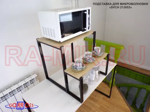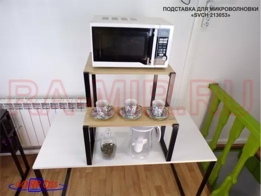 - Универсальная подставка для бытовой техники (микровоновой печи, кофемашины, тостера, электрического чайника и др) позволяет эффективно использовать место на столе.