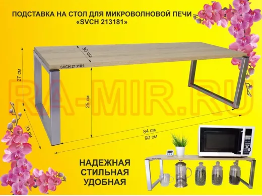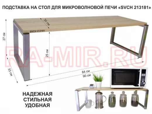 Заказать звонокПодставка на стол для микроволновой печи, высота 27см, сереб "SVCH 213181" полка 90х30см, дуб сонома