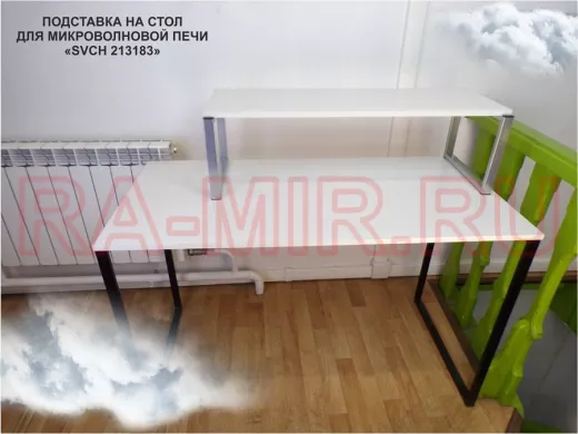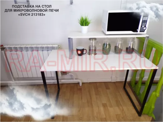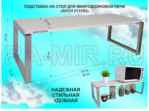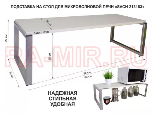 Подставка на стол для микроволновой печи, высота 27см, сереб "SVCH 213183" полка 90х30см, сосна