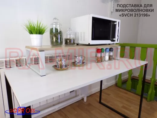 - Универсальная подставка для микровоновой печи позволяет эффективно использовать место на столе.
