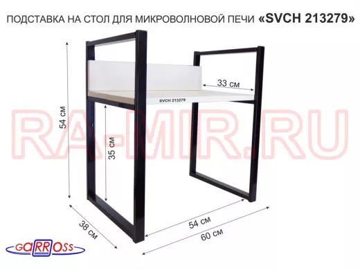 Заказать звонокПодставка, полка на стол для микроволновой печи, высота 54см черный "SVCH 213279"полка 35х60см,сосна