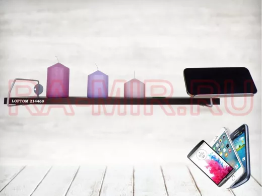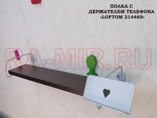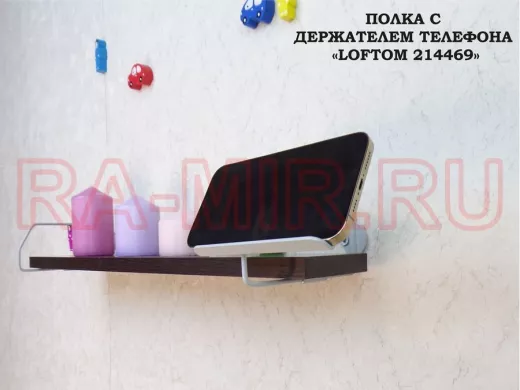 Полка с держателем телефона, серый "LOFTOM 214469" полка 54х10 см, венге
