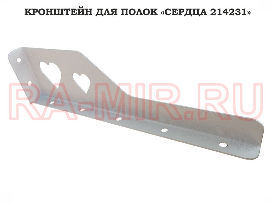 Кронштейн "СЕРДЦА 214231" для полок, правый 30x8 см , 7 отверстий 7 мм, серый