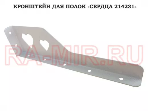 Заказать звонокКронштейн "СЕРДЦА 214231" для полок, правый 30x8 см , 7 отверстий 7 мм, серый