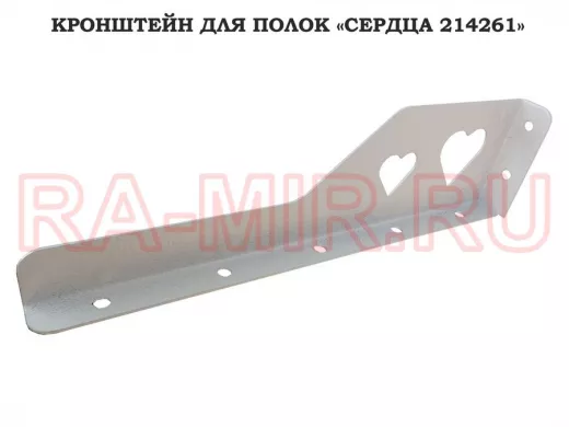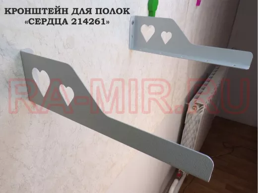 Заказать звонокКронштейн "СЕРДЦА 214261" для полок, левый 30x8 см , 7 отверстий 7 мм, серый