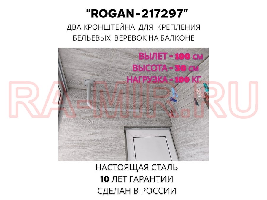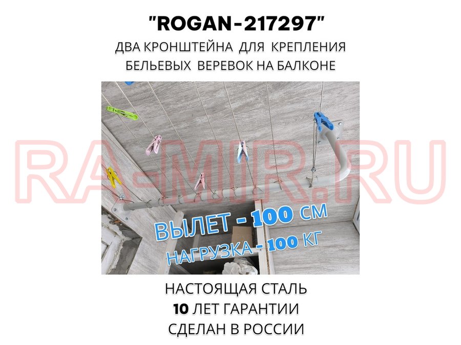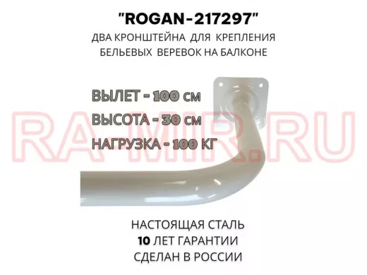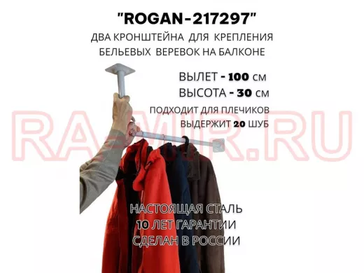 Заказать звонокСушилка для белья под веревки, 2 кронштейна, длина 100см, вылет 30см "ROGAN-217297" серый, 32мм