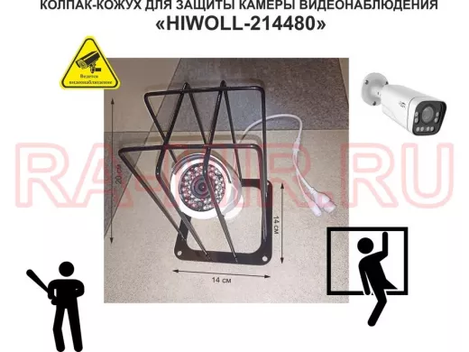 Колпак кожух для камеры видеонаблюдения, основание 14х14х20см "HIWOLL-214480", вылет 20см, черный