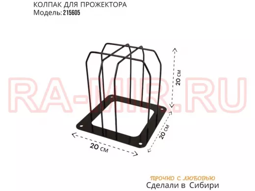 Заказать звонокКолпак кожух для прожектора или лампы освещения со скосами 20х20см "POHER-215605" вылет 20см, черный