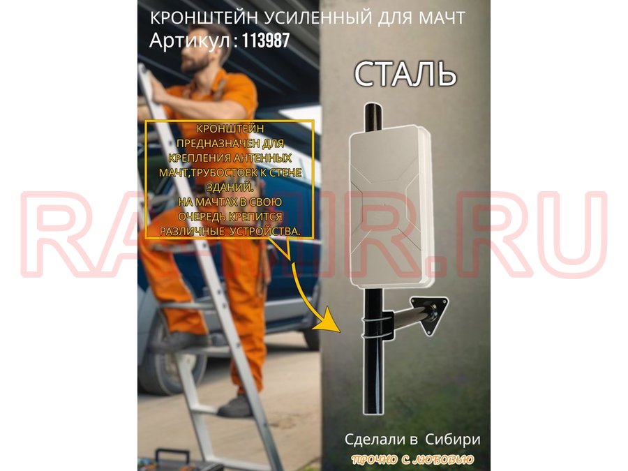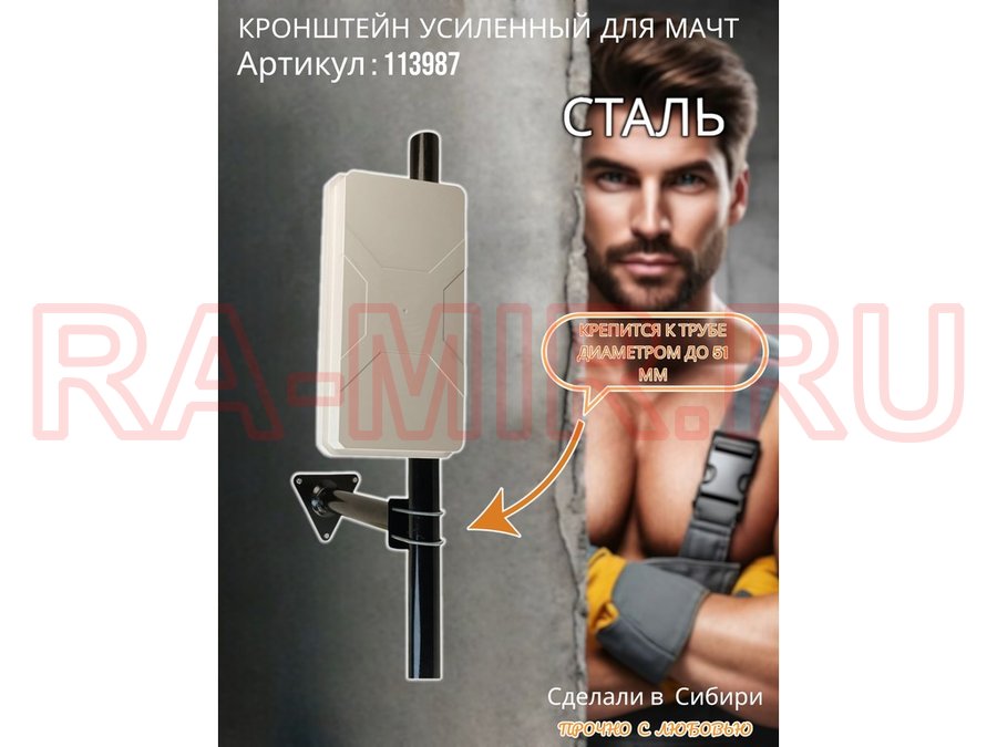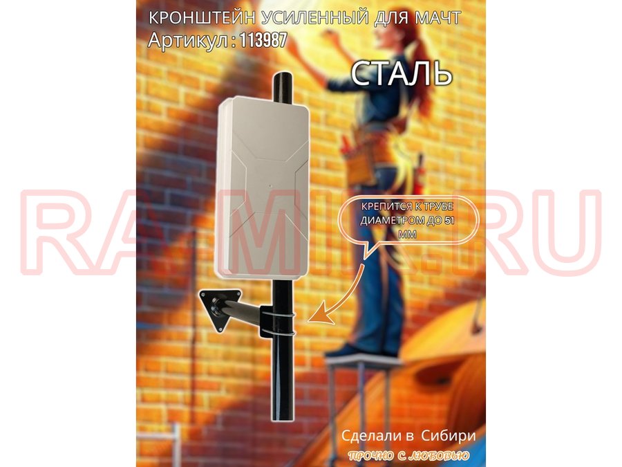 - В конструкции кронштейна использована усиленная труба диаметром 51 мм.