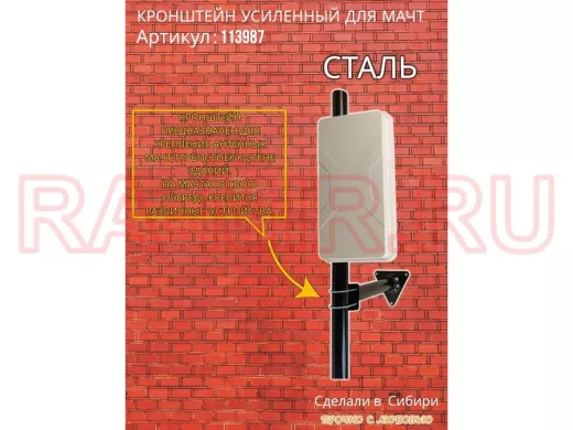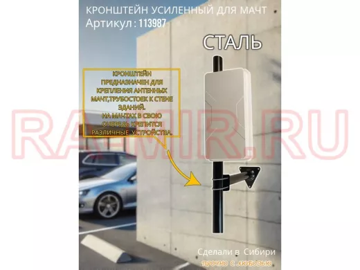 - Кронштейн предназначен для крепления к стене здания с выносом 30 см антенных мачт и трубостоек.