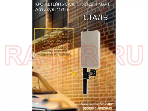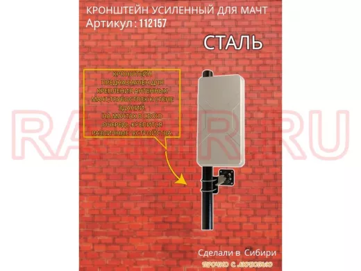 - Кронштейн предназначен для крепления к стене здания с выносом 30 см антенных мачт и трубостоек.